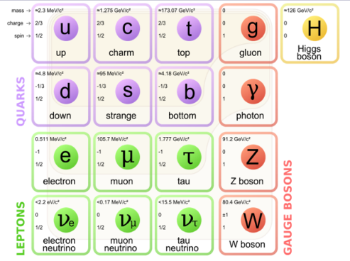 图1. 标准模型中的基本粒子