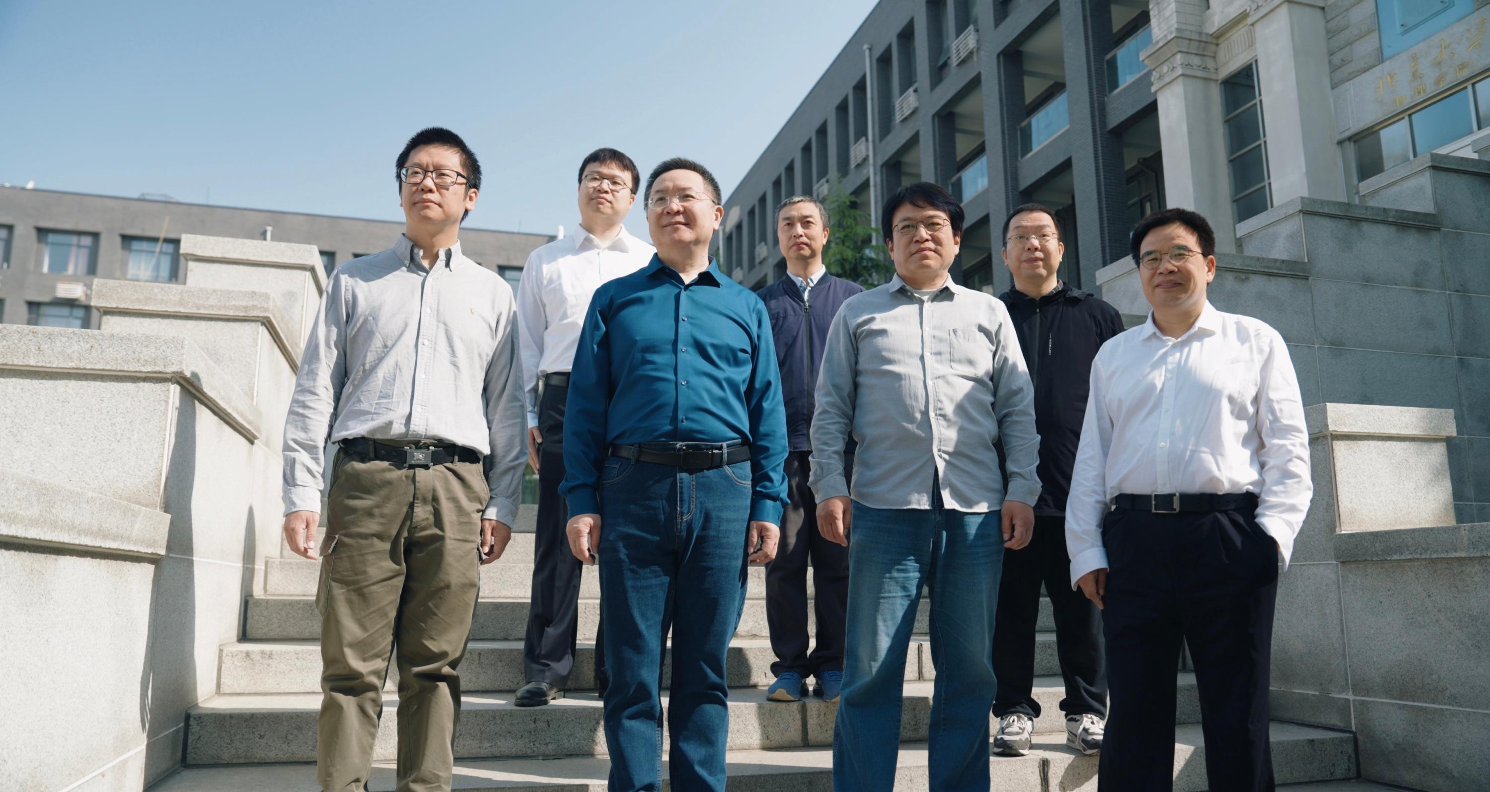 北京大学CMS实验团队教师(左起:孙小虎、周辰、冒亚军、王大勇、班勇、李强、王思广)