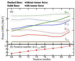 当原子核的核子数(质子或中子)为2,8,20,28,50,82,126的时候,原子核性质会表现出格外的稳定性,这些数字被称之为原子核的“幻数”。Mayer 和 Jensen等人利用包含了自旋轨道耦合的壳模型对幻数进行了成功的解释,他们开创性的工作被授予1963年诺贝尔物理学奖。随着对远离稳定线原子核性质的研究,人们发现在某些区域原子核壳结构发生了显著变化,与传统壳模型的描述很不一致。为此人们给出了很多理论解释,其中张量力作为新壳演化的重要原因,近些年成功地解释了核素图中多个质量区域新的壳演化规律,受到人们的广泛关注。