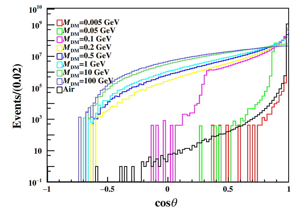 图2: 北京大学研究团队对不同质量暗物质对缪子散射角分布的模拟结果