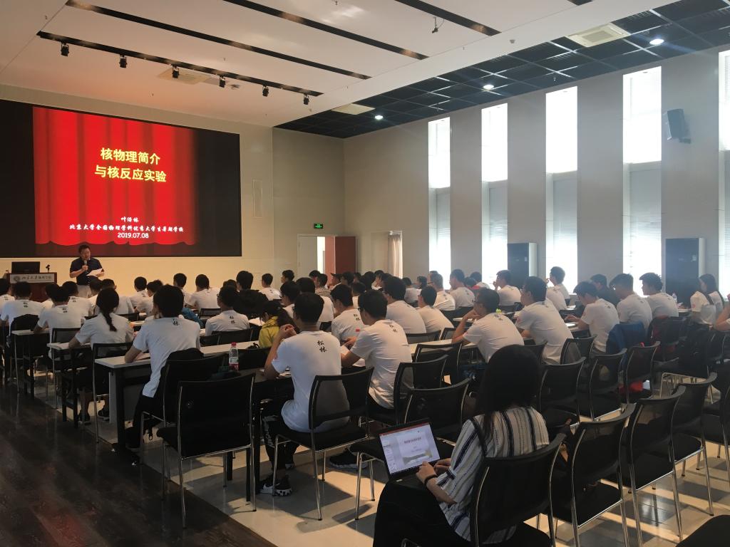 北京大学物理学院于2019 年7 月7 日-7 月12 日举办物理学科优秀大学生暑期学校,本次以“粒子与高能物理”为主题,由技术物理系承办,冒亚军教授为总体负责人。来自北京大学、清华大学、武汉大学、南开大学、厦门大学、复旦大学、南京大学、兰州大学、吉林大学、北京师范大学、西安交通大学、四川大学、浙江大学、上海交通大学、中国科学技术大学、哈尔滨工业大学等国内著名高校的64位学生参加了此次暑期学校。