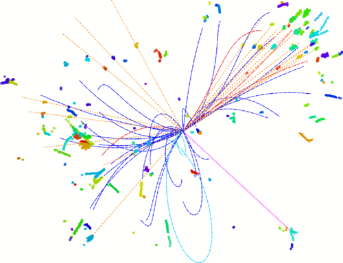 正负电子对撞机CEPC中模拟的双喷注事例示意图