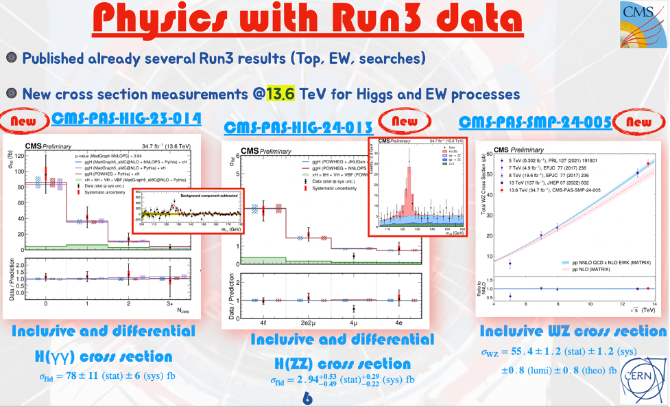 北京大学高能物理CMS实验组近期取得了一批重要进展:主导完成了希格斯玻色子与粲夸克联合产生的首次寻找、主导完成WZγ 过程的观测、主导完成VBS W±W±H过程的首次探测、为CMS实验13.6TeV质心能量下希格斯玻色子产生截面的首次测量做出贡献。这些工作在两年一度的国际高能物理大会(ICHEP 2024)上作为对撞机物理的亮点得到展示。
