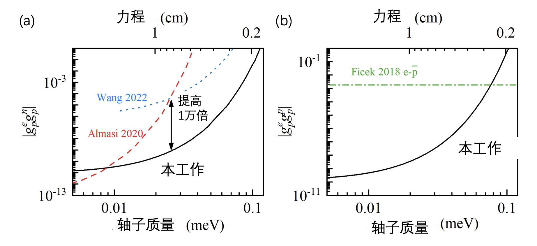 实验结果未观测到预期的第五力信号,但在0.01meV–0.1meV的轴子质量区间内,对电子自旋-中子自旋及电子自旋-质子自旋耦合常数给出了迄今最严格的实验限制。在轴子质量约0.02meV处,较此前结果提升了超过1万倍。