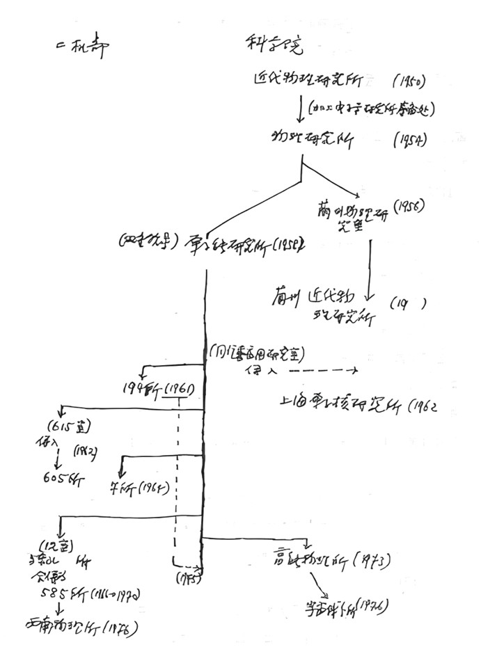 钱三强先生绘制的新中国核科学技术研究机构“老母鸡下蛋”图