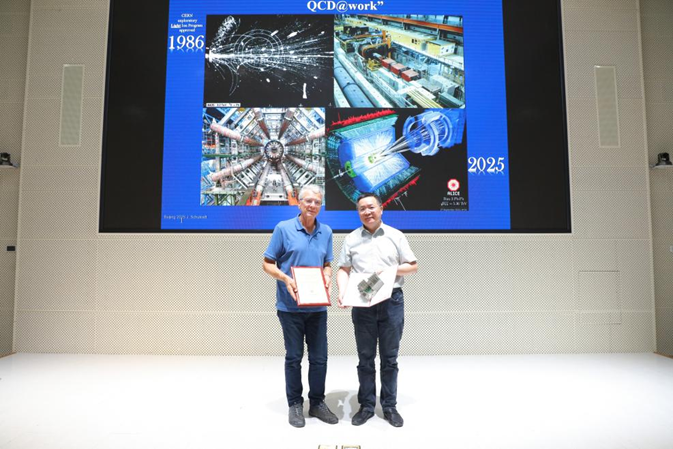 舒克拉夫特是欧洲核子研究中心大型强子对撞机(LHC)上的“大型离子对撞机实验”(ALICE)国际合作组创始发言人。他首先以亲历者的视角,系统回顾了极端相对论重离子碰撞研究从欧洲核子研究中心超级质子同步加速器(SPS)到美国布鲁克海文国家实验室相对论重离子对撞机(RHIC),再到LHC的发展历程。他梳理了夸克胶子等离子体(QGP)理论从早期猜想到实验确证的科学历程,深入阐述了QGP作为量子色动力学(QCD)在高温高密度极端条件下的体现形式。